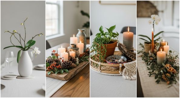- Motifs marqués : choisissez des accessoires simples (branches, objets dorés, vaisselle neutre).