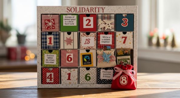 - Partage solidaire : proposez qu’un ou deux objets par calendrier soient déposés dans une boîte de dons ou remis à une association locale — parfait pour initier des enfants à la solidarité de saison.