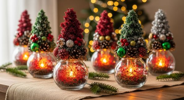 - Privilégiez 2 ou 3 couleurs harmonieuses par décoration (ex : vert, rouge, blanc ou bleu glacier, argent, gris).